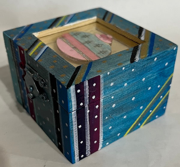 A small shadow box with a hand painted ornament , comes with a hand painted evil eye ornament.
