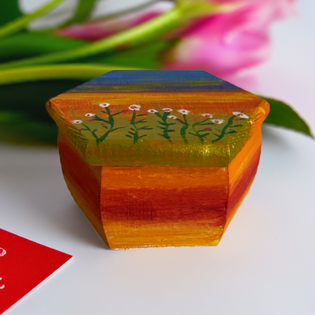 Perfect for storing small essentials, this stunning box is decorated with a peaceful sunset painting, adding a special touch of elegance to any home.