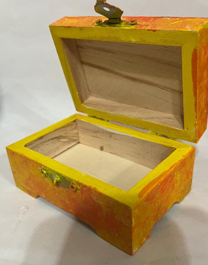 Gift candies or any small trinket to someone special in a hand painted box, a souvenir box to make any occasion special.