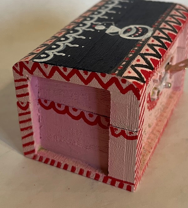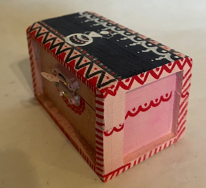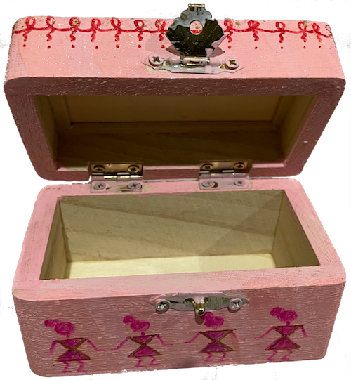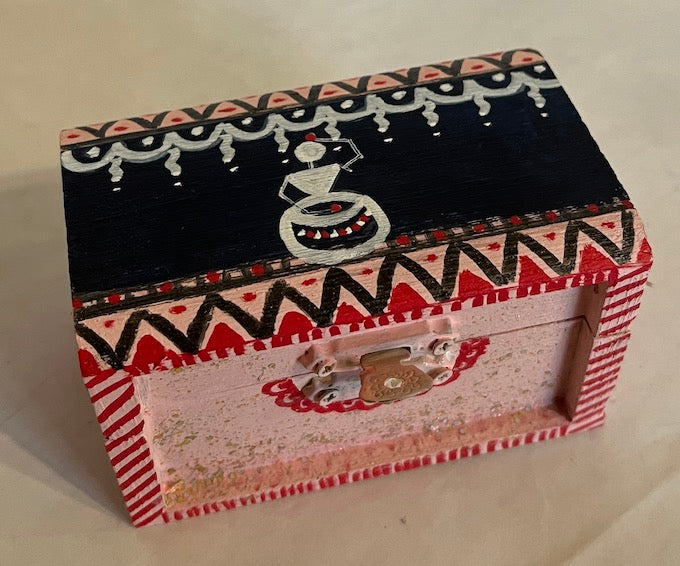 A mini hand painted wooden trinket with lid for gifting or organizing in style.This box can be used to gift candies or small hair accessories, earrings, rings etc on any occasion like birthday, anniversary or any festival